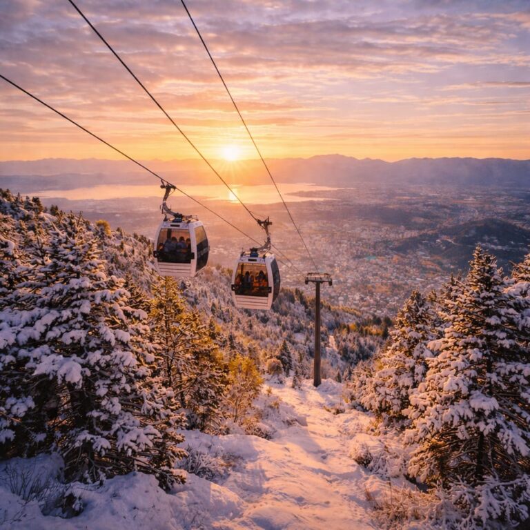 Montée en téléphérique jusqu’au mont Uludağ pour profiter des paysages panoramiques, puis temps libre pour se promener, se détendre ou pratiquer des activités de montagne selon la saison.